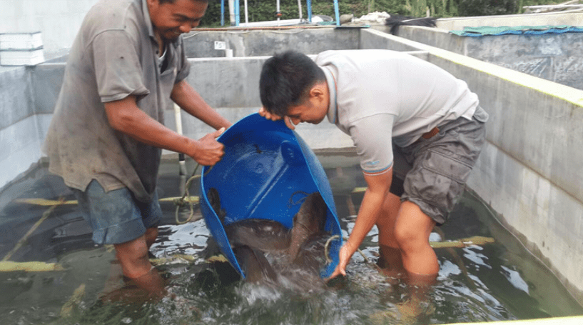 Pindahkan induk ke dalam kolam pemeliharaan yang sudah di siapkan.
